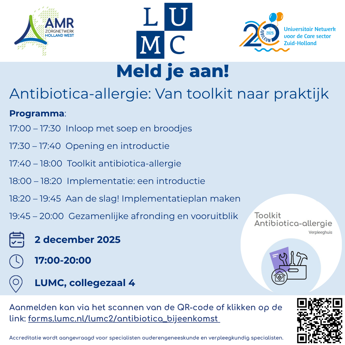Op 2 december 2025 organiseren UNC-ZH Universitair Netwerk voor de Care sector Z-H, Leiden University Medical Center en AMR Zorgnetwerk Holland West samen een interactieve bijeenkomst: “Antibiotica-allergie: van toolkit naar praktijk”