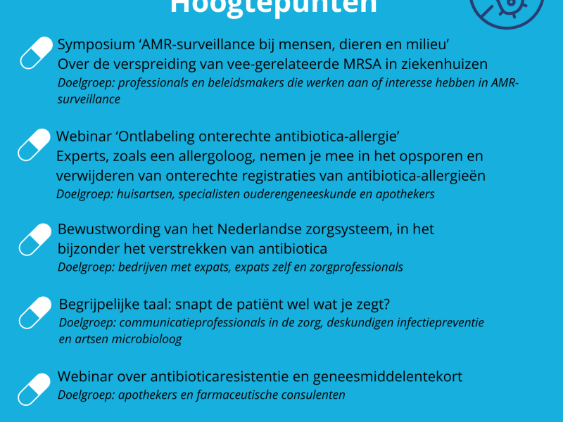 Het ministerie van Volksgezondheid Welzijn en Sport (VWS) is in 2016 de regionale aanpak antibioticaresistentie (ABR) gestart. Een belangrijk onderdeel van deze aanpak is de oprichting van tien Regionale Zorgnetwerken ABR met als doel antibioticaresistentie te voorkomen en verspreiding te bestrijden op regionaal niveau.